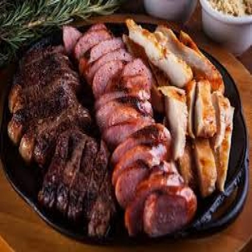 Galeto, Arroz, Farofa, Salpicão, Salada, Batata e Vinagrete