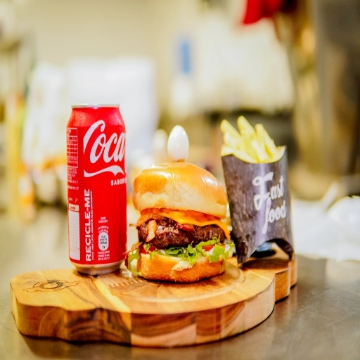Churras Burger na Brasa 200g + Refrigerante Coca 350ml + Batata Frita